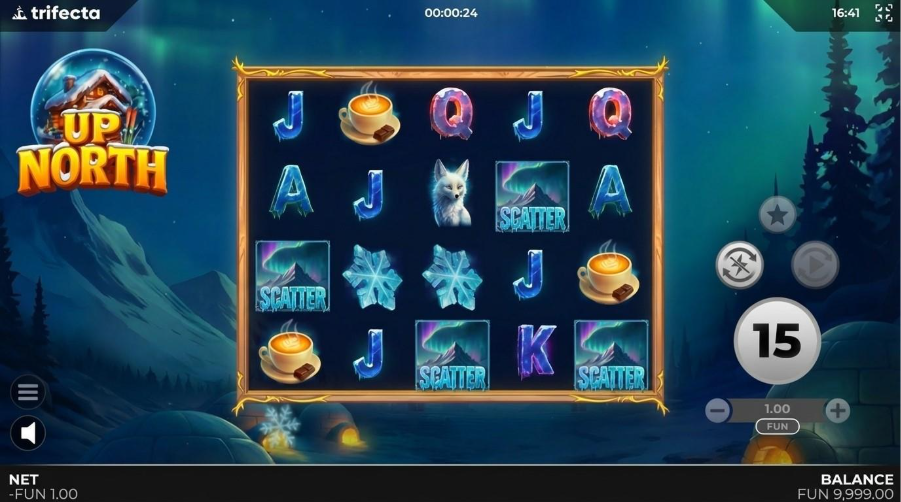 Up North’s high volatility and 23% Hit Rate tie perfectly into its calm, wintery themes by slowing down the pace and making players wait for their wins. Patient players are rewarded with larger prizes, encouraging them to hunt for better results and bonuses.